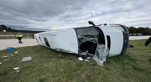 Kazada devrilen minibüsteki 12 ilkokul öğrencisi ile sürücü yaralandı.