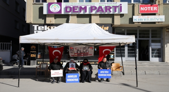 MUŞ (AA) Muş'ta çocuklarını terör örgütü PKK'dan kurtarmak isteyen aileler, DEM Parti İl Başkanlığı binası önündeki eylemlerini devam ettirdi.