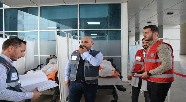 Tatbikatta senaryo gereği depremin ardından yoğun bakım bölümünde yatan hastaların farklı hastanelere sevki sağlandı, acil servisine başvuran depremzedelerin ilk müdahaleleri yapıldı.