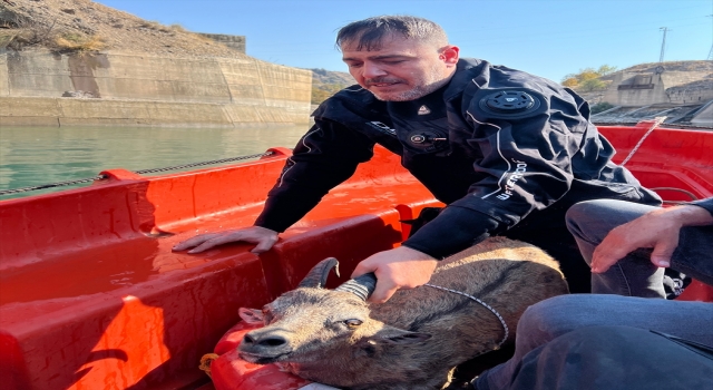 TUNCELİ (AA) Tunceli'de düştüğü baraj gölünde mahsur kalan yaban keçisi, İl Afet ve Acil Durum Müdürlüğü (AFAD) dalgıçlarınca kurtarıldı.